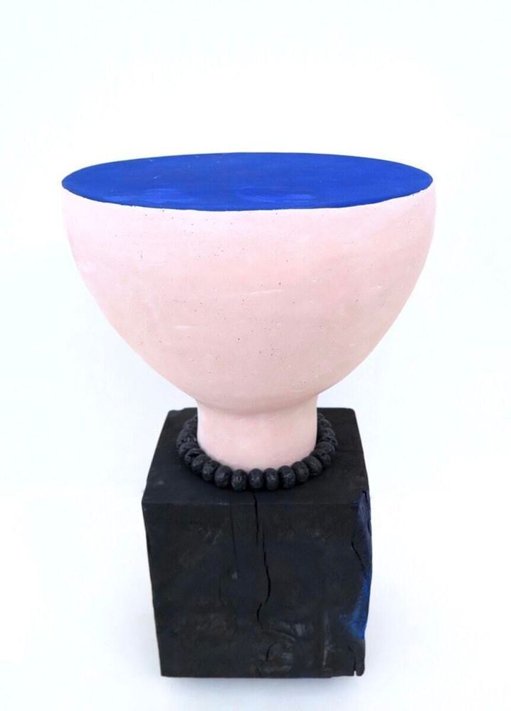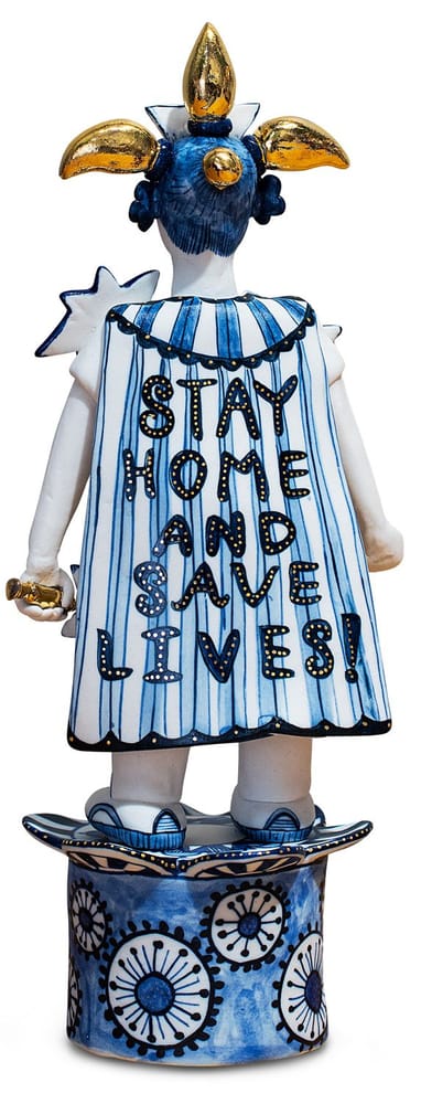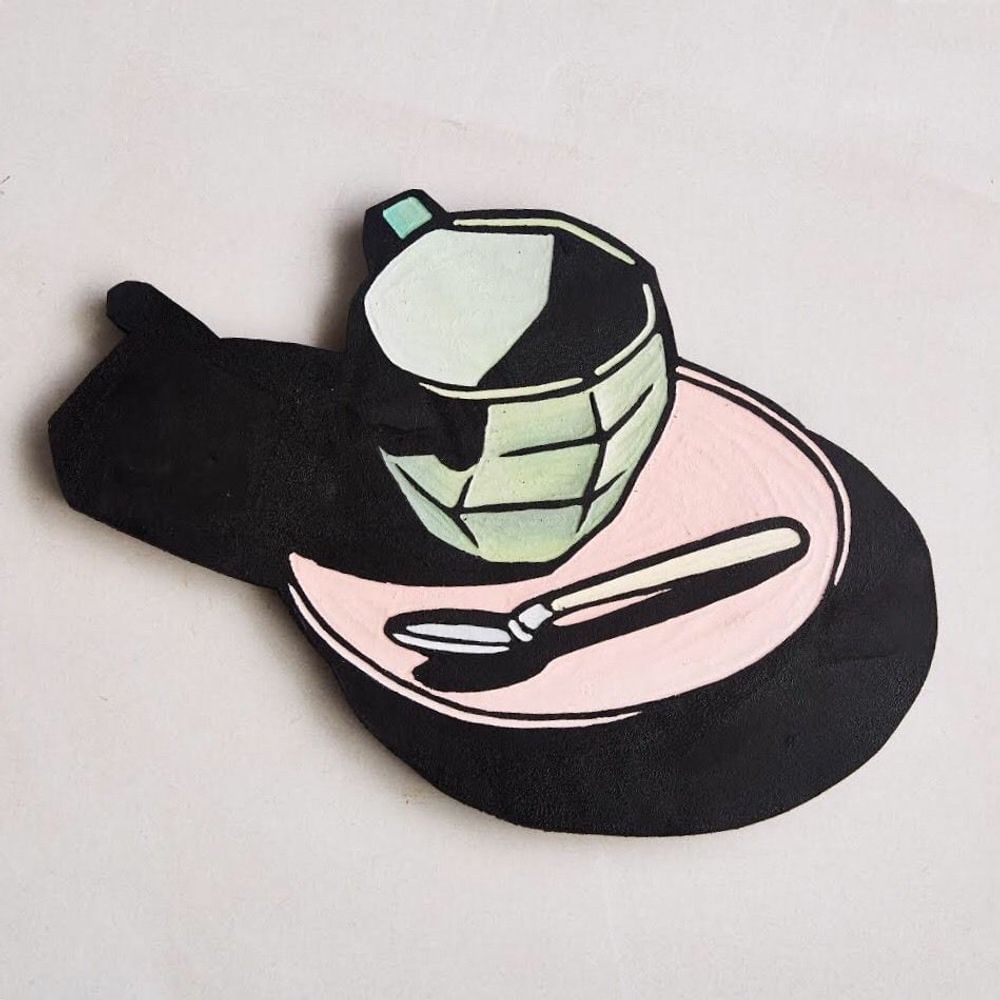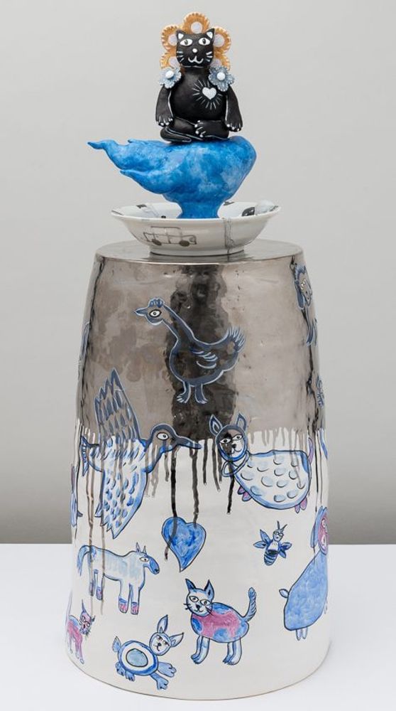 Ceramic, acrylic paint, underglaze, stainless steel base