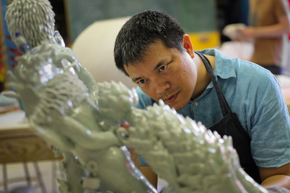 "Joy and the possibilities of creative communion ground the practice of Vipoo Srivilasa (previously). The artist, who lives and works between Australia and Thailand, is known for his ceramic sculptures that take an ebullient approach to life.