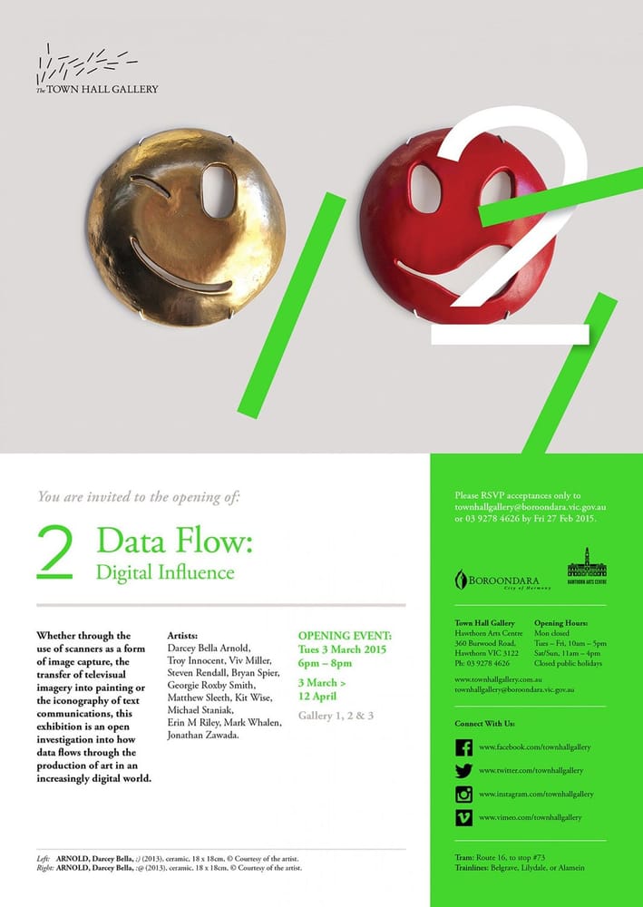 Mark Whalen features in the group exhibition ‘Data Flow: Digital Influence’ at the Town Hall Gallery in Hawthorn, Victoria. The exhibition will run from 3 March – 12 April, 2015 and features a wide range of artists and artworks investigating how data flows through the productions of art in an increasingly digital world.